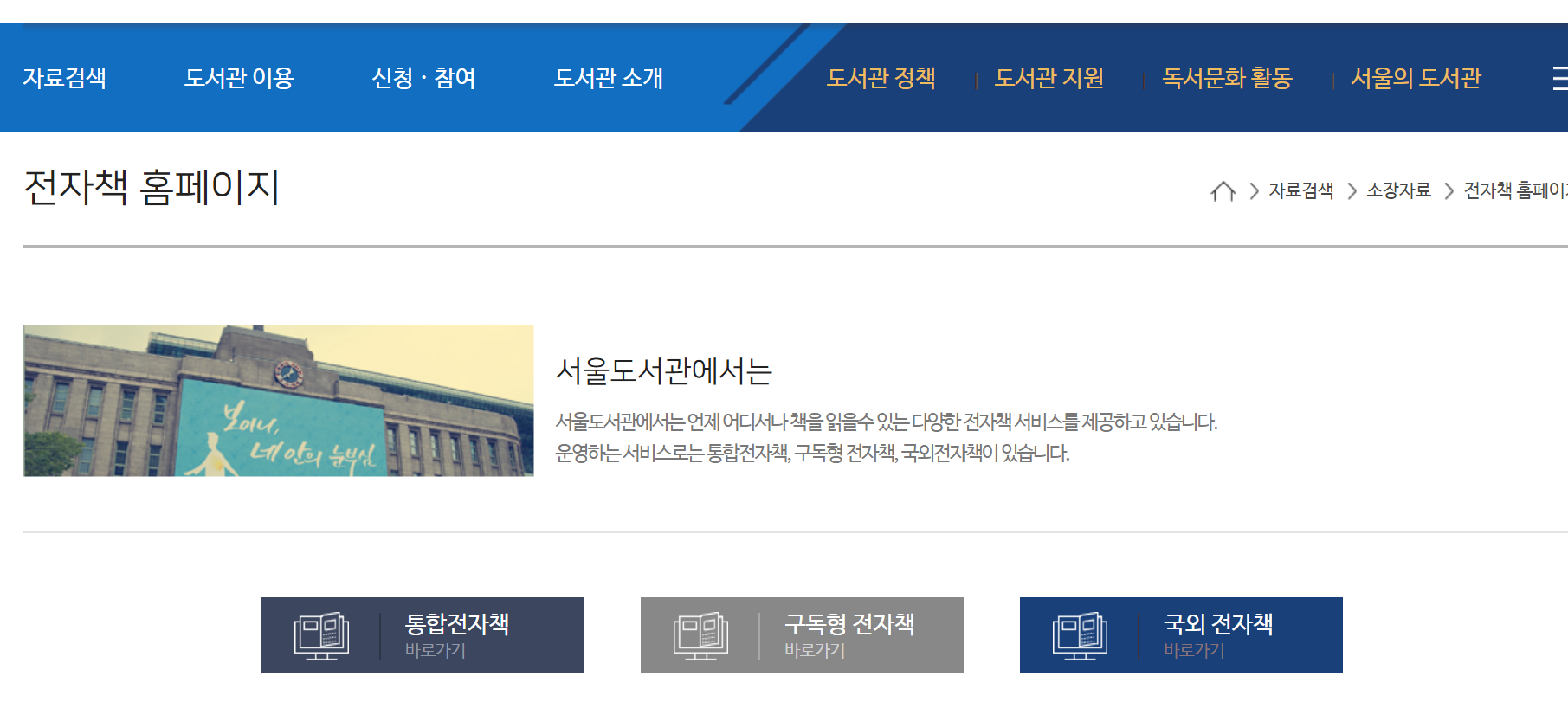 서울도서관 통합 전자책 홈페이지