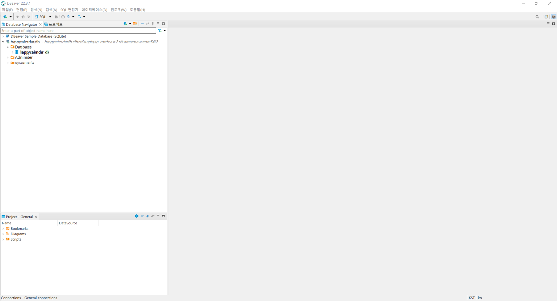DBeaver를 설치하고 바탕화면에서 바로가기 파일을 누르면 나오는 화면이다. MySQL Workbench를 사용해 봤다면 익숙할 것 같다.