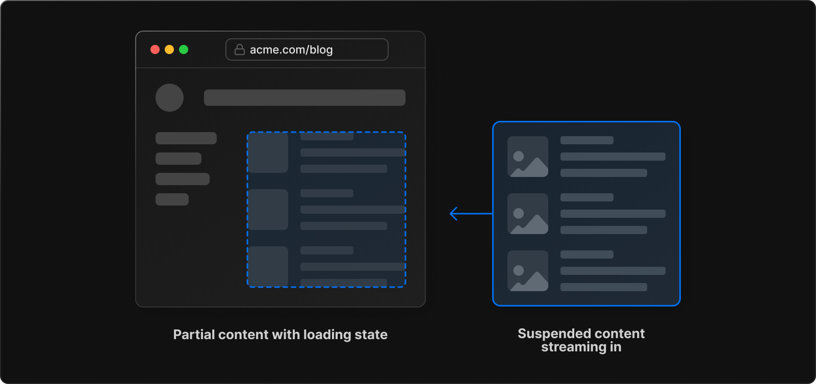 treaming 및 Suspense는 UI의 렌더링된 단위를 클라이언트에 점진적으로 렌더링하고 증분적으로 스트리밍할 수 있는 새로운 React 기능이다.