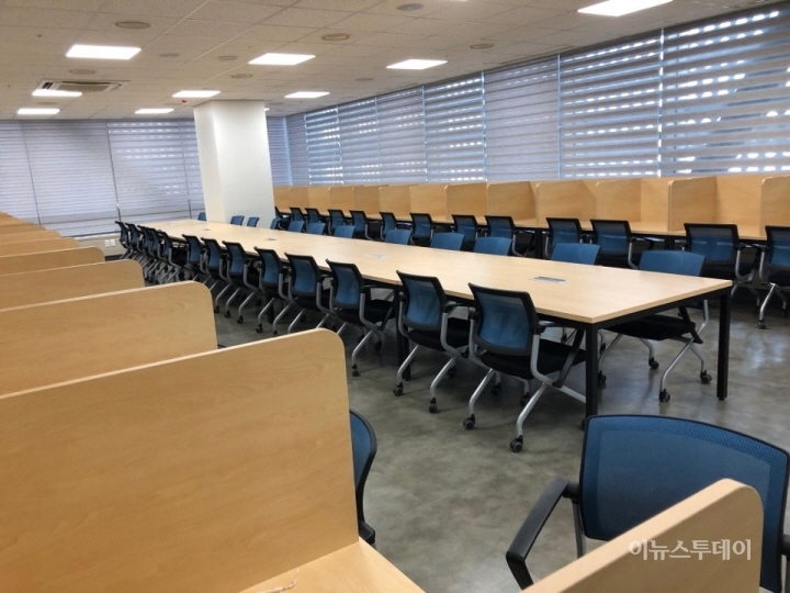 시험 기간 동안 애용했던 독서실 전경입니다. 콘센트가 자리마다 배치되어 있고, 마치 진짜 독서실 같은 분위기여서 정말 좋았어요.