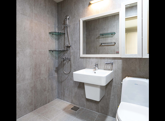 화장실은 총 두 개가 있어서 한 쪽은 변기와 세면대가 포함되어 있습니다.