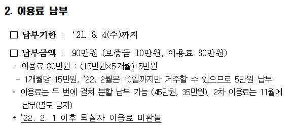 보증금 10만원을 제외하고 6개월간 80만원만 지불하면 됩니다.