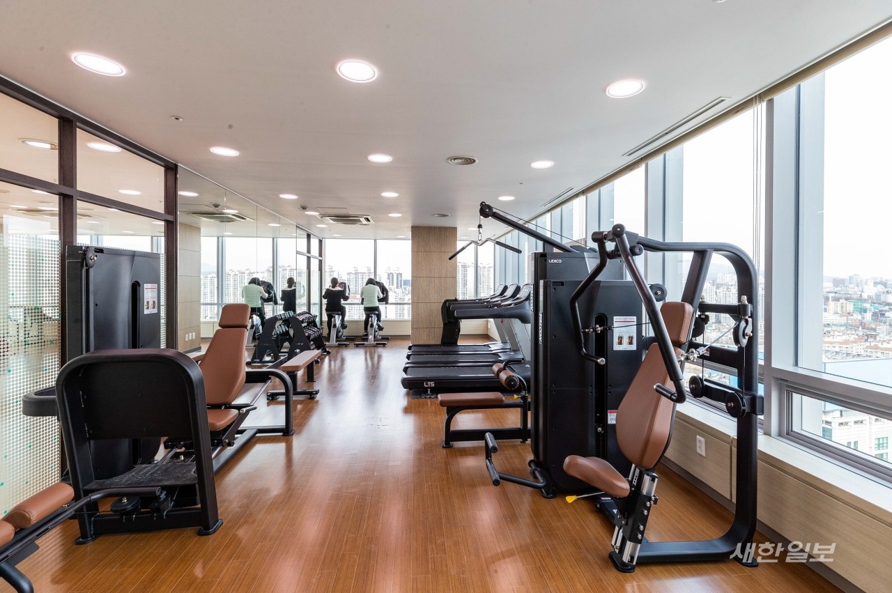위쪽 층으로 올라가면 이렇게 크지는 않지만 충분한 기구가 있는 헬스장이 있는데요, 왠만한 기구들이 잘 구비되어 있어, 운동을 하는 데 부족함이 없었습니다 :)