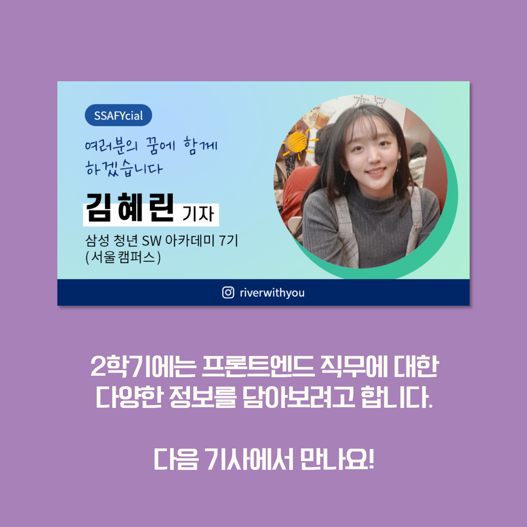 2학기에는 프론트엔드 직무에 대한 다양한 정보를 담아보려고 합니다. 다음 기사에서 만나요!