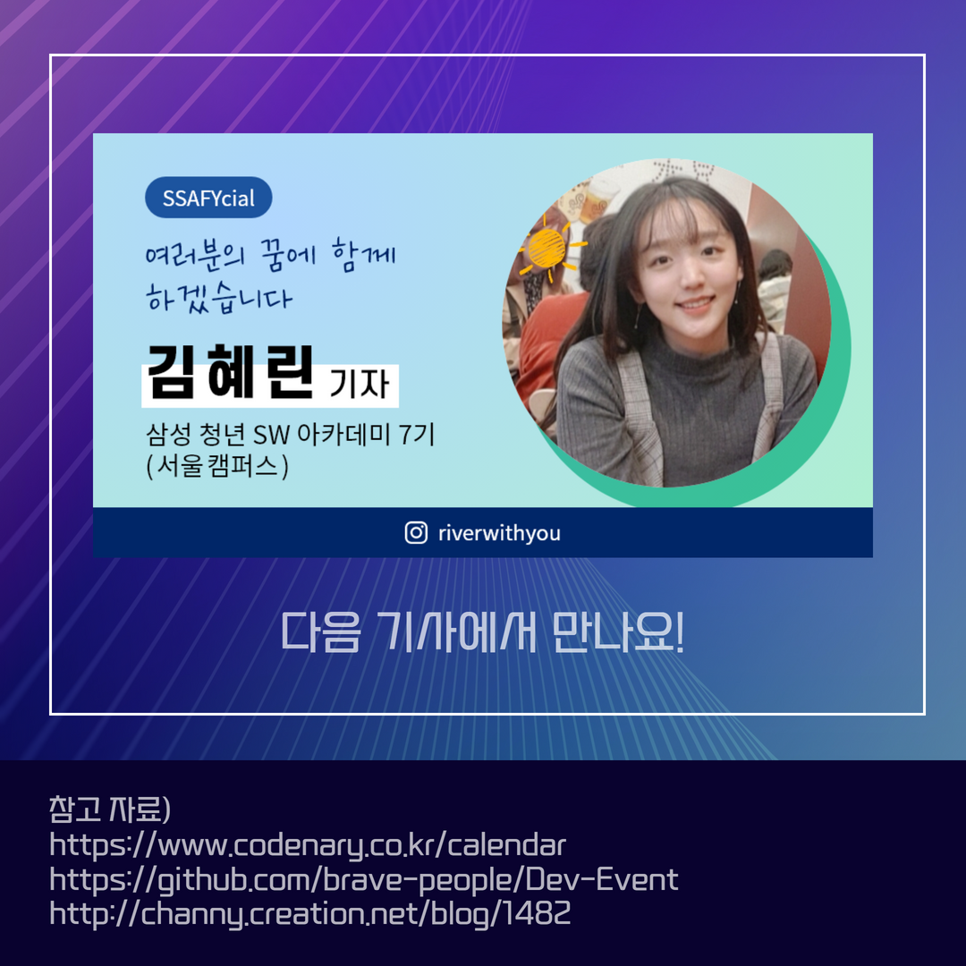 | SSAFY 7기 입학식에 (랜선으로) 갔다 왔어요! (0) | 2022.07.20 |