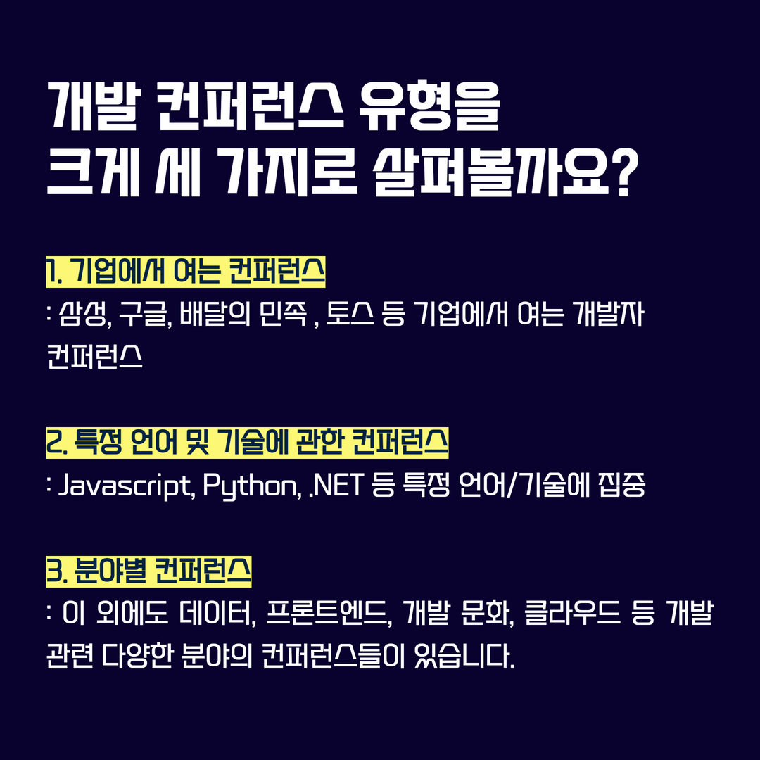 개발 컨퍼런스 유형을 크게 세 가지로 살펴볼까요?