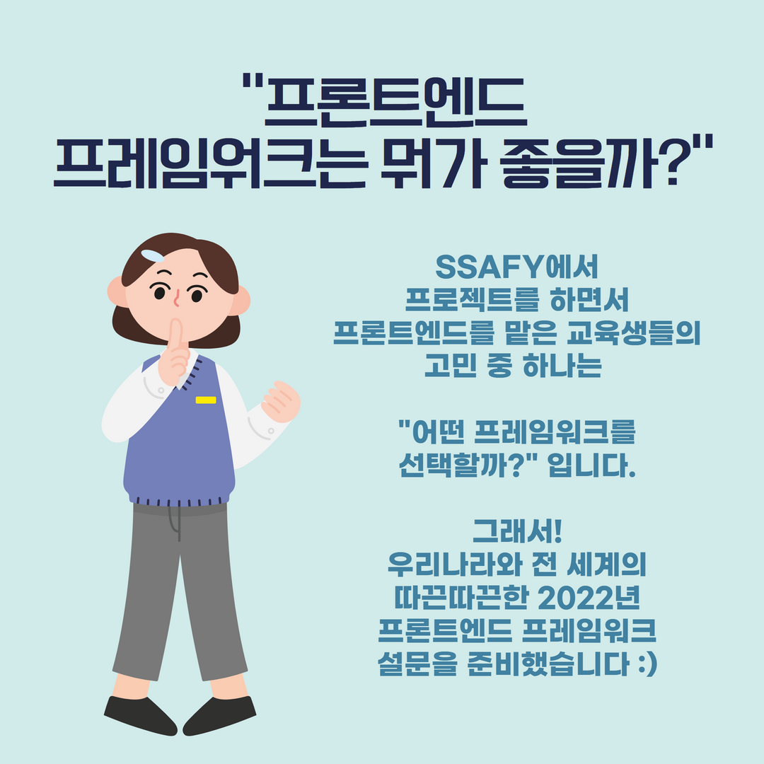 우리나라와 전 세계의 따끈따근한 2022년 프론트엔드 프레임워크 설문을 준비했습니다 :)