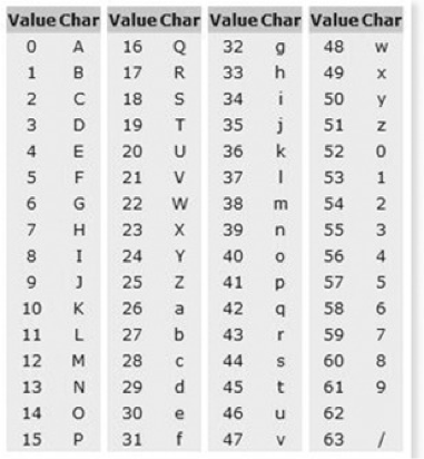 인코딩된 문자열은 알파벳 대소문자와 숫자, 그리고 "+", "/" 기호 64개로 이루어지며, "="는 끝을 알리는 코드로 쓴다.