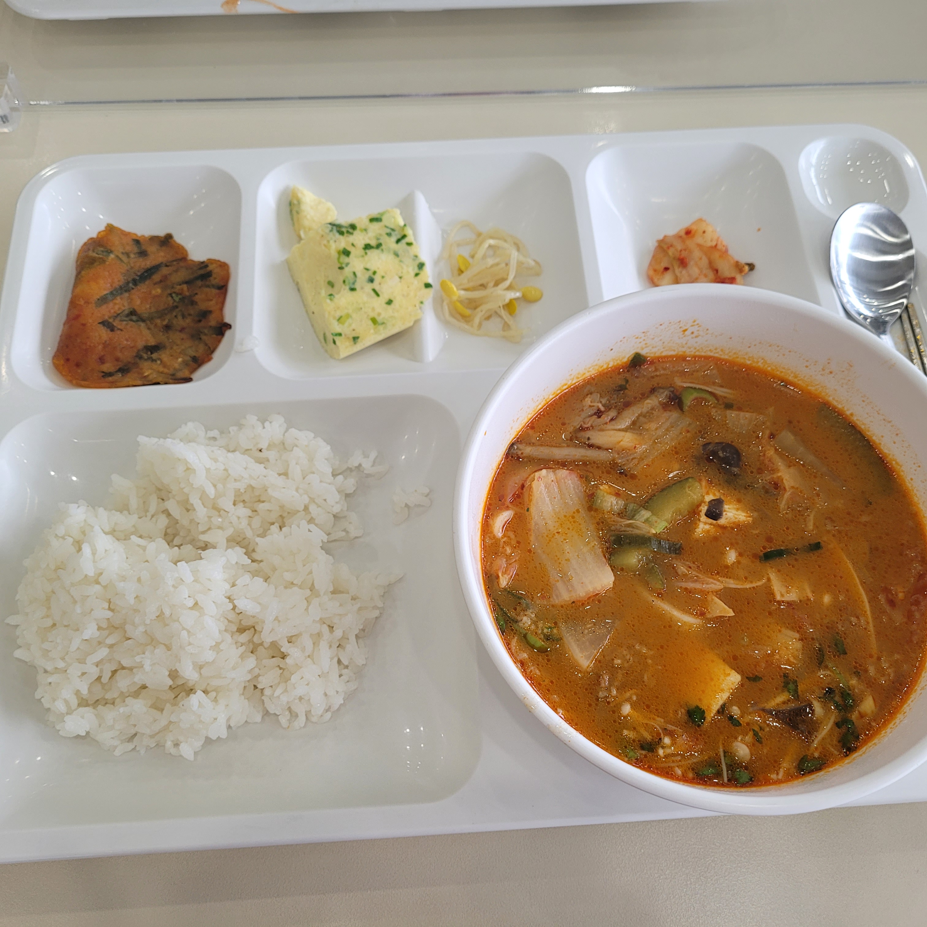 뭐였는지 전혀 기억이 안나는 메뉴 ?? 아마 고추장 찌개 같은데 저 급식 스타일 계란찜이 너무 좋당