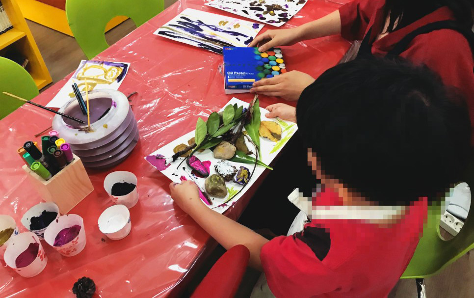 교실에서 물감과 크레파스를 이용해 자유롭게 꾸미는 수업이었다.