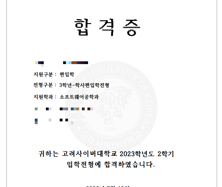 여러 사이버대학교 중에 고려사이버대를 선택한 특별한 이유가 있는 건 아니다. 몇 곳의 사이버대학교에 지원했고, 대부분 합격을 해서 그 중 평이 좋고 커리큘럼이 마음에 드는 곳으로 골랐다.