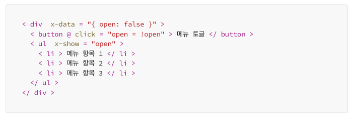 Alpine.js 역시 가벼운 프레임워크를 표방하면서 만들어진 프레임워크인데요