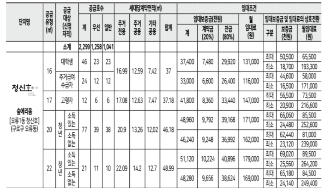 그 다음은 공급 유형, 즉 집의 크기를 확인해야 해요. 대학생들에게는 주로 가장 작은 14-16형이 제공되는 편인데, 청년, 신혼부부 등의 계층에는 선택지가 좀 더 있는 것 같더라구요. 그래서 크기 별로 어떤 것이 가장 인기가 있을지 치열한 눈치싸움이 벌어지기도 합니다 ㅎㅎ