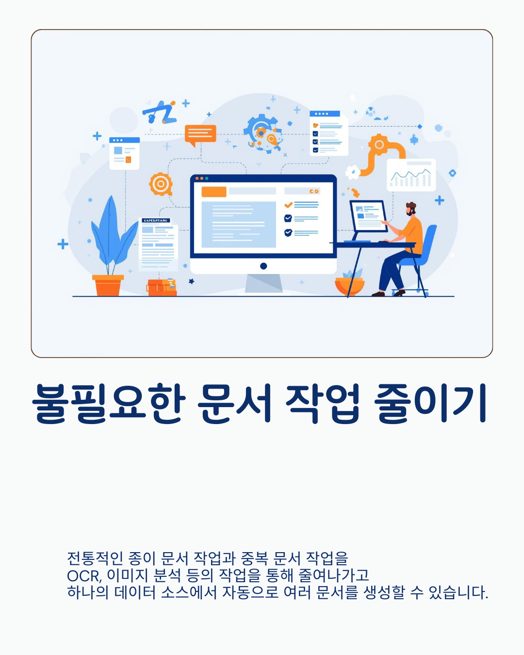 전통적인 종이 문서 작업과 중복 문서 작업을 OCR, 이미지 분석 등의 작업을 통해 줄여나가고